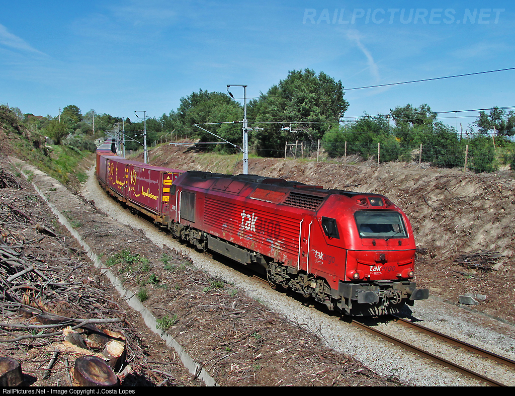 | A Takargo freight train, 83431, pulled by diesel locomotive Stadler 6001, from Fuentes de OƱoro to Entroncamento.