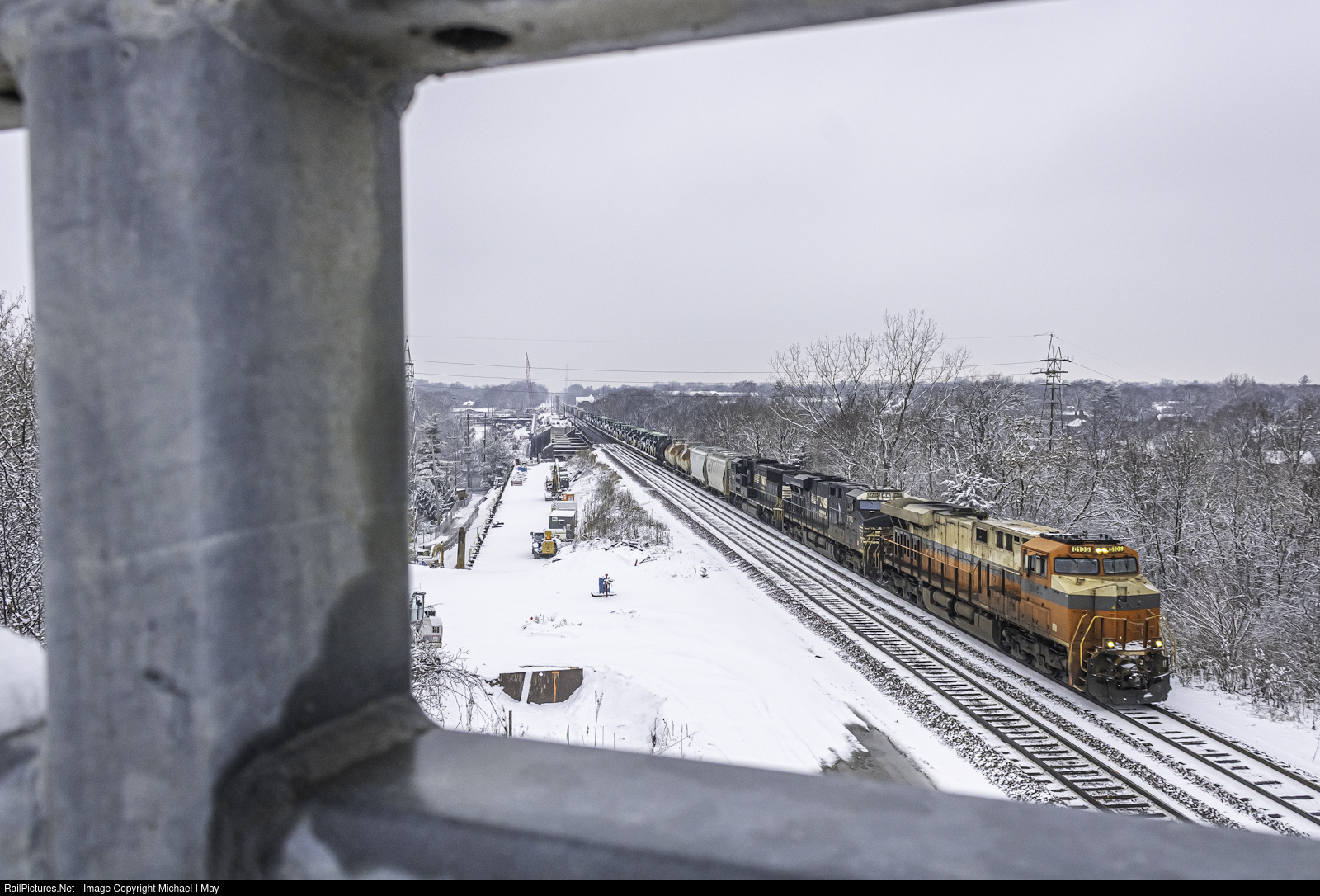NS 8105 leads M-G3AH over the Fox River in Geneva Illinois. 1/6/24