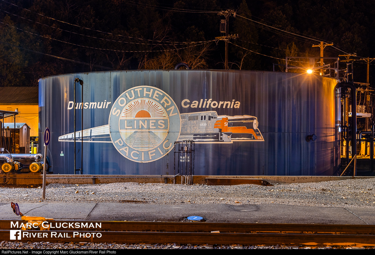 Espee Tank. The waste water collection tank at the Union Pacific facility/Amtrak station in Dunsmuir, California is a lasting memory of the Southern Pacific Lines. Depicted is SP 6839 (SD45T-2R) began life as SP 9352 (SD45T-2) next to SP 4449, "the Daylight" or 4-8-4 "Northern". Despite being taken over by Union Pacific Railroad in 1996, many remnants of "SP" or "Espee" are still in evidence 25 years late on the night of March 26, 2022.