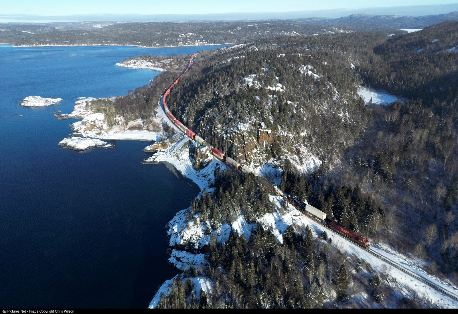 CP ES44AC 8749 brings 118's train around Jackfish Bay and is about to take the siding at Jackfish to meet 113's train.