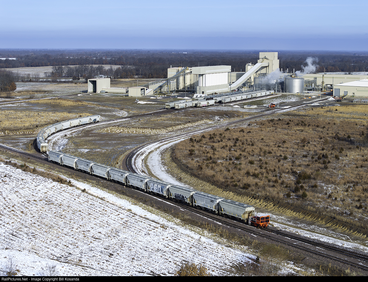A Wabtec Shuttlewagon is sorting hopper cars at the Certainteed Roofing plant near Jonesburg, Missouri. This little vehicle was moving 10-20 cars at a time at about walking speed.