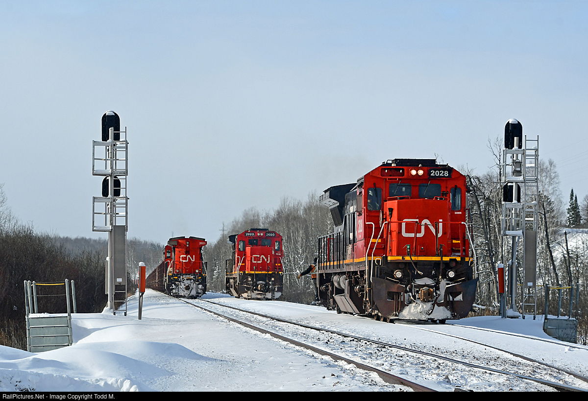 | What started out as CN 2020 leading iron ore loads south will end up being CN 2028 leading iron ore loads south into Two Harbors after the crew swaps leaders due to a mechanical issue. Ultimately a new crew will take them south from here as well. |