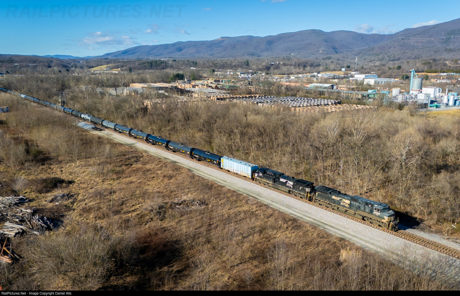 Eastbound ethanol train NS 64D rolls through Glenvar, VA with a dash 9 leader.