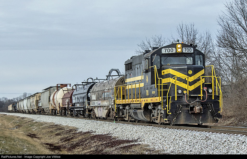 Built in 1960 as UP 701 today MG Rail 700 leads a cut of cars back to its yard after a CSX local had dropped cars off to it. Check out that one piece windshield.