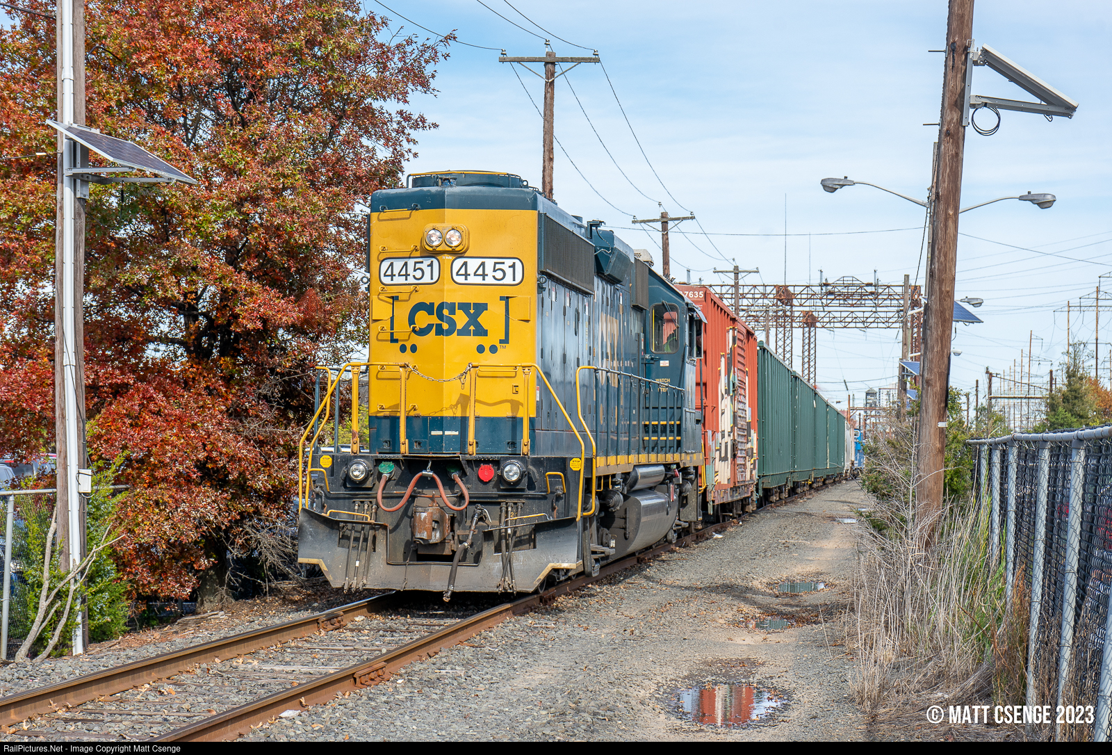 CSXT GP40 no. 4451 operated by Conrail Shared Assets Operations (CSAO) is seen on the Delco Lead at Jersey Ave Station, waiting to head further west with a short cut of cars. |