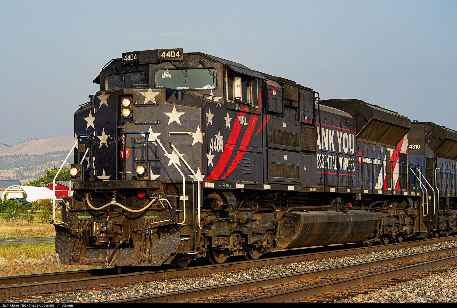 MRL SD70ACe 4404 honors our essential workers at Tobin, MT.