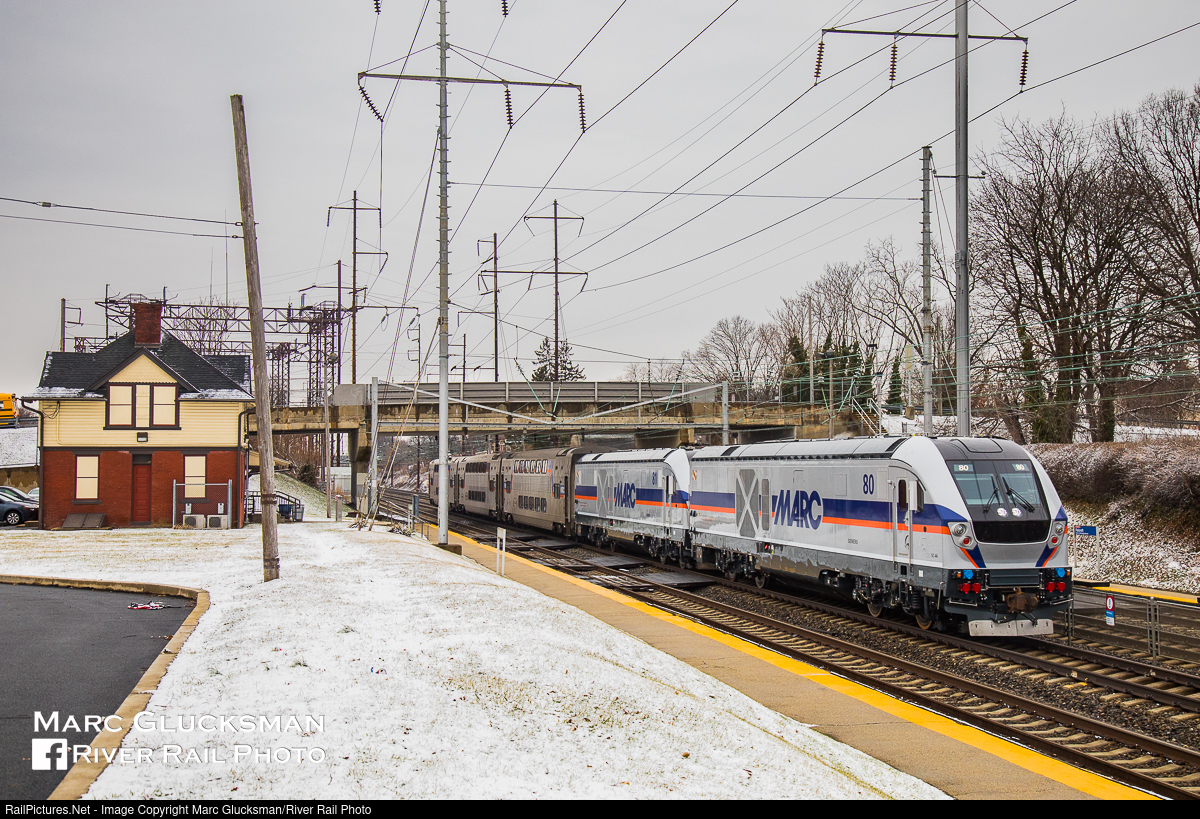 MARC in PA. The testing of SC-44s continues on the Northeast Corridor on Wednesday, January 17, 2018, as Maryland Area Rail Commuter (MARC) Siemens SC-44 Chargers 80 and 81 lead a three car train of Kawasaki cars through the SEPTA stop at Folcroft, PA. The former Pennsylvania Railroad Station still serves SEPTA customers today.