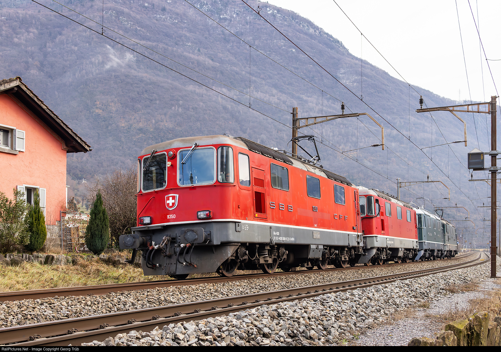 Shot from the rear. Transfer train 38031 from Oensingen via Olten-Lenzburg-Wohlen-Arth Goldau-Erstfeld-Göschenen-Airolo-Biasca to Bellinzona Sao Paolo, between Claro and Castione-Arbedo. The Re 420 # 161 (Re 4/4 II # 11161) of SBB Personenverkehr (with ETCS L2) and the Re 4/4 II # 11173 of the Verein Depot- und Schienenfahrzeuge Koblenz (DSF) in multiple control pull the partially cannibalized Re 420 # 145 (Re 4/4 II # 11145) of the SBB, without functional brakes. At the end is the switched on and operated Re 430 # 350 (Re 4/4 III # 11350) of the Oensingen-Balsthal-Bahn Historic, mainly as a brake locomotive. This was the former Südostbahn (SOB) Re 4/4 # 41 built 1967, which was taken over by the SBB in 1995 and got the number Re 4/4 III # 11350 (Re 430 # 350). Sold to OeBBH in december 2021, used as reserve locomotives for passenger traffic and for freights.