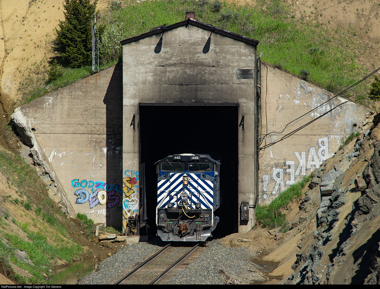 Livingston Helper #2 disappears into the tunnel at Westend, MT.