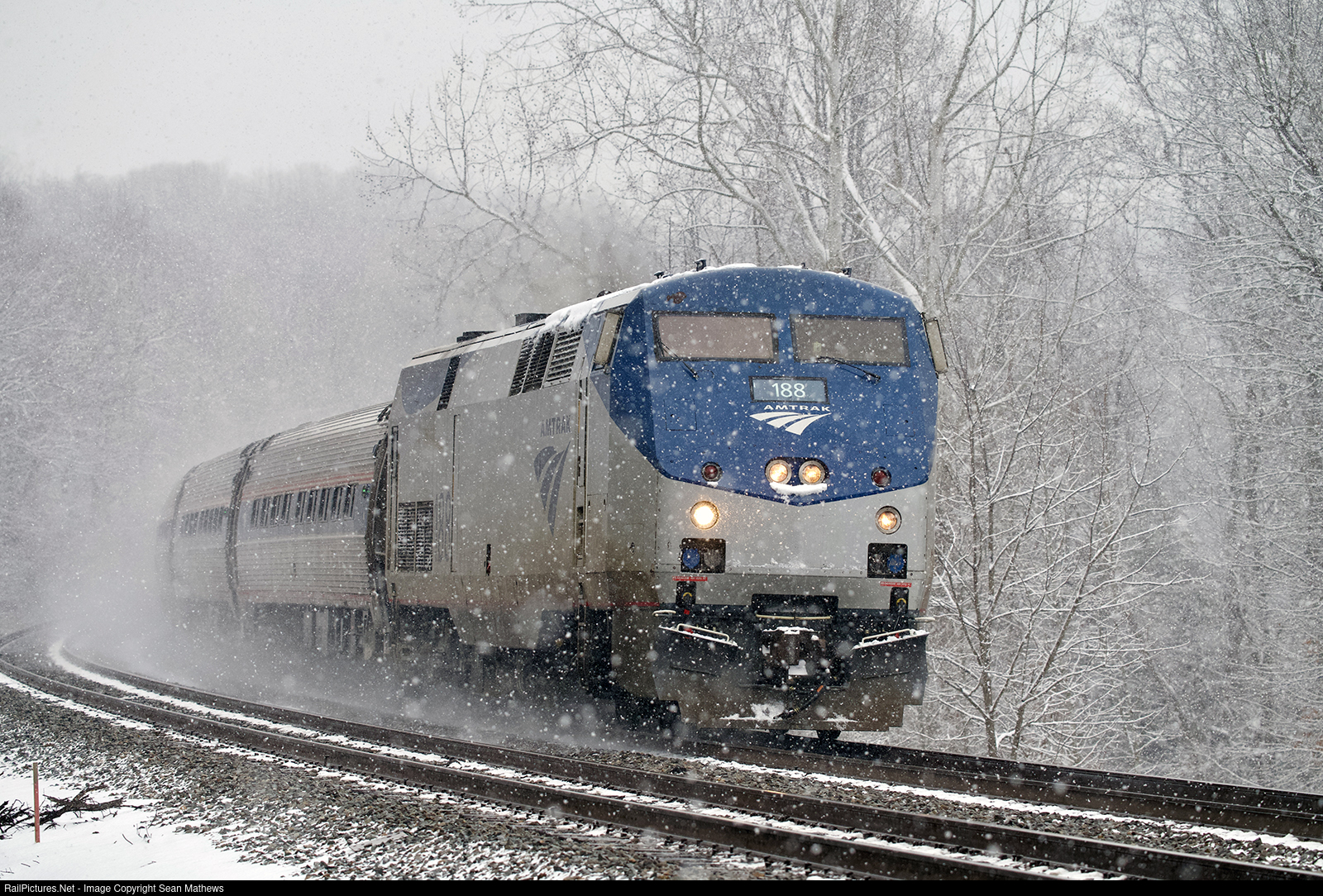 It's a snowy day in Northern Virginia as AMTK 188 heads Southbound.