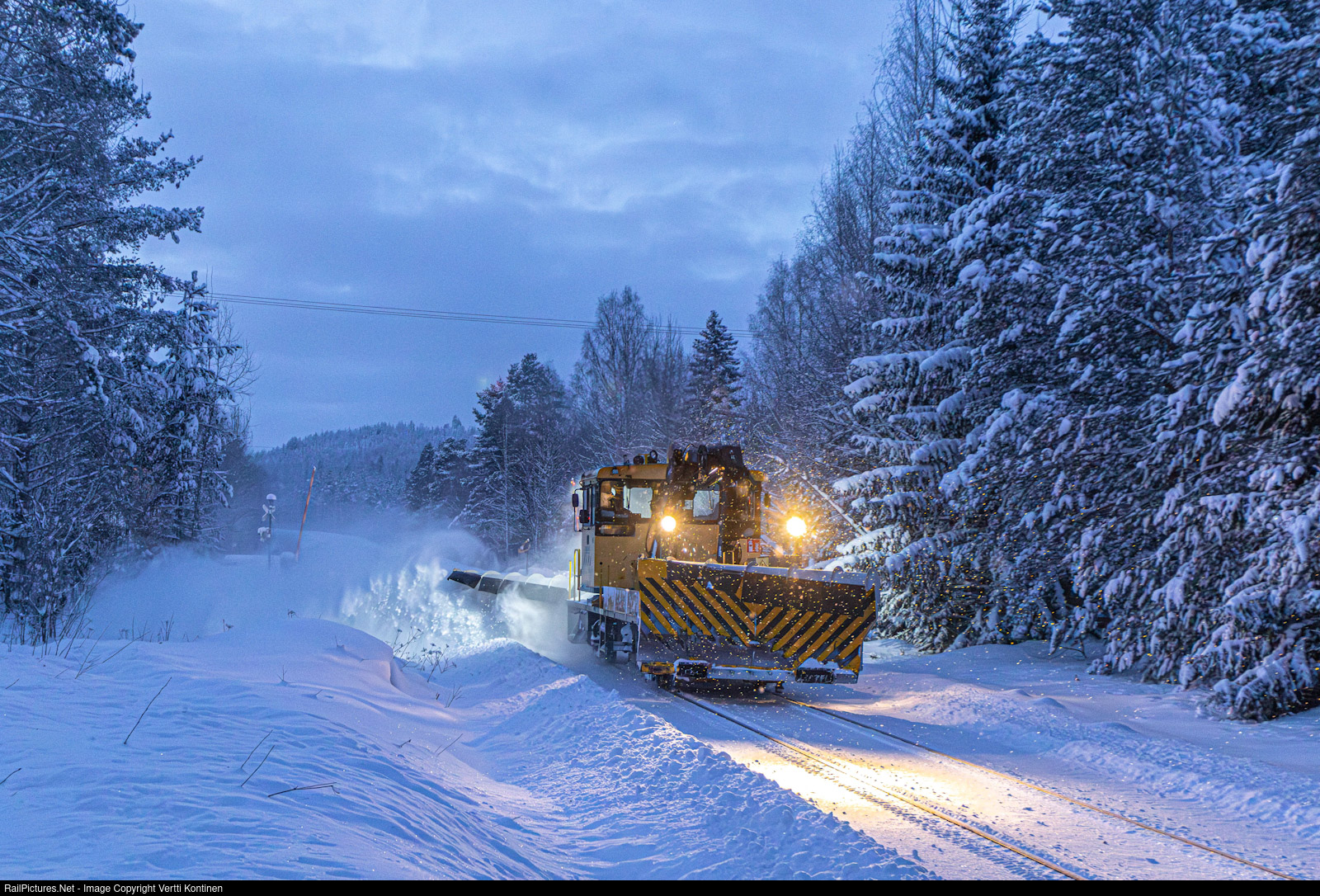 | Blue hour is at it's peak when Destia Rail Oy Tka7 226 can be seen pushing snow banks away on the Haapamäki-Jyväskylä line |
