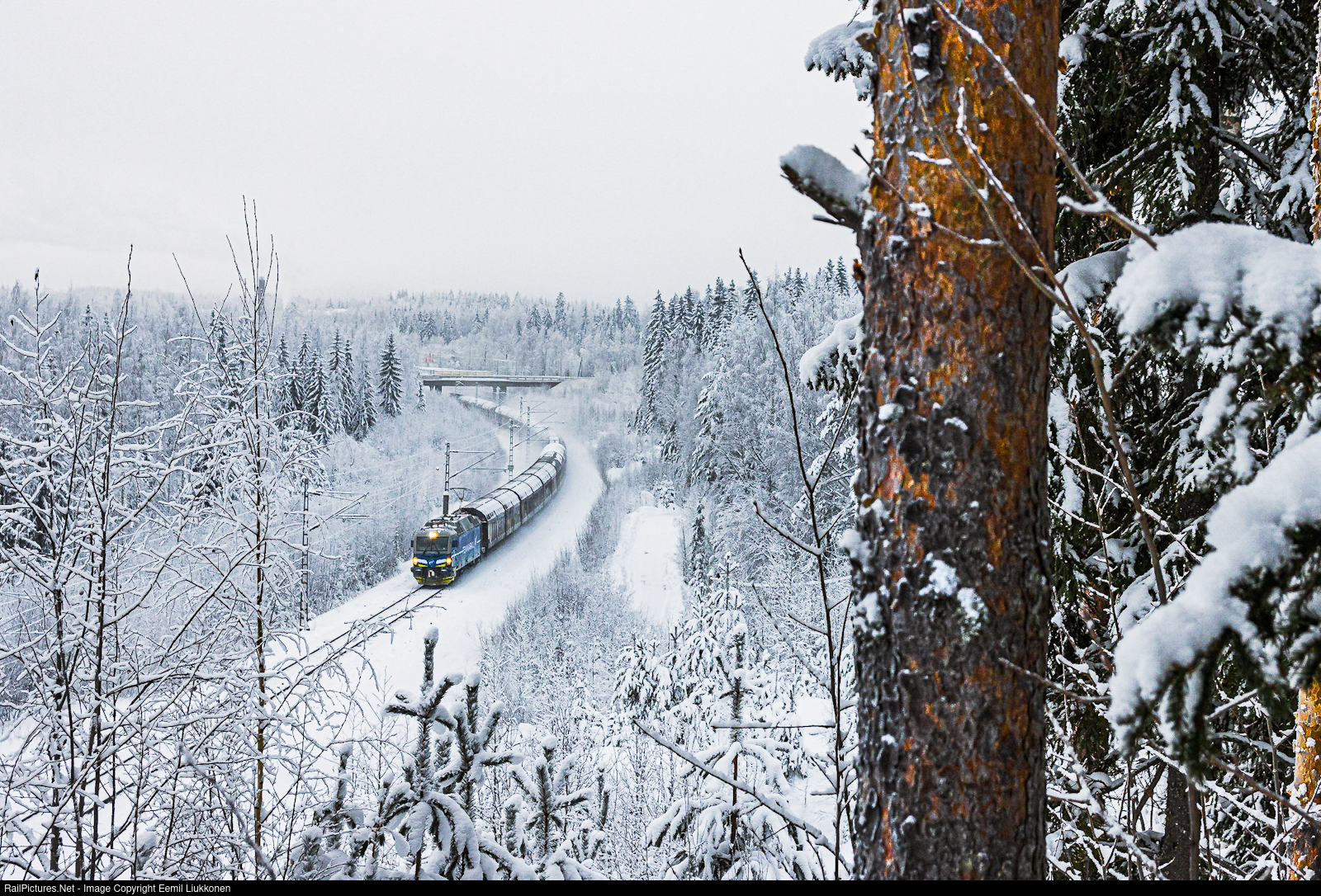 | Fenniarail's Vectron electric locomotive is hauling a freight train to Patokangas while still familiarising the snowy path that it has reguarly started to run. |