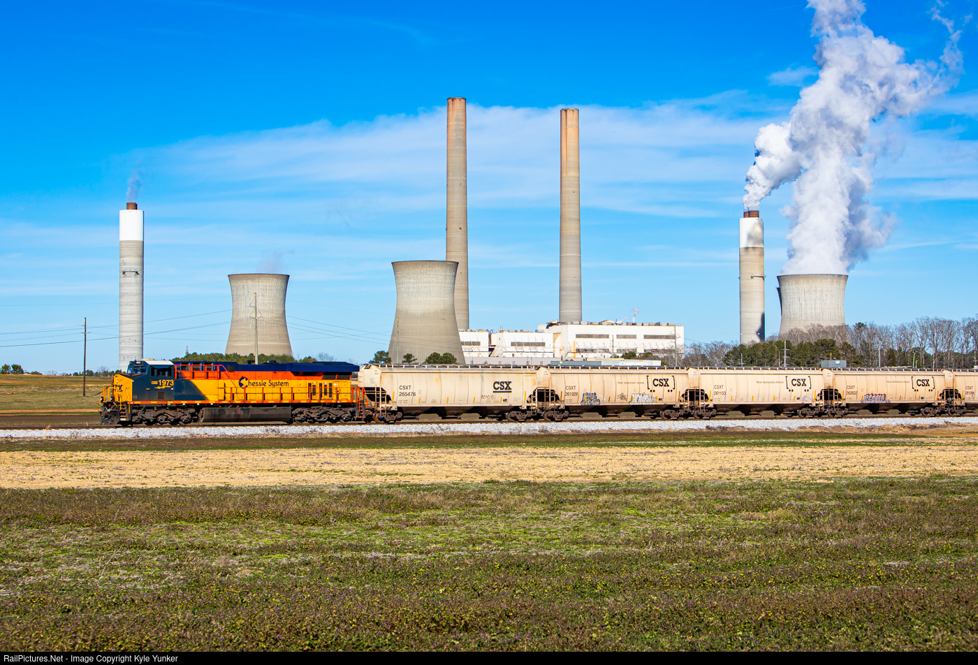 CSX's Chessie System heritage mullet leads grain train G407 by Georgia Powers Plant Bowen