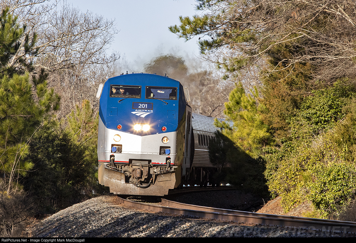 RailPictures.Net Photo: AMTK 201 Amtrak GE P42DC at Auburn, North Carolina by Mark MacDougall