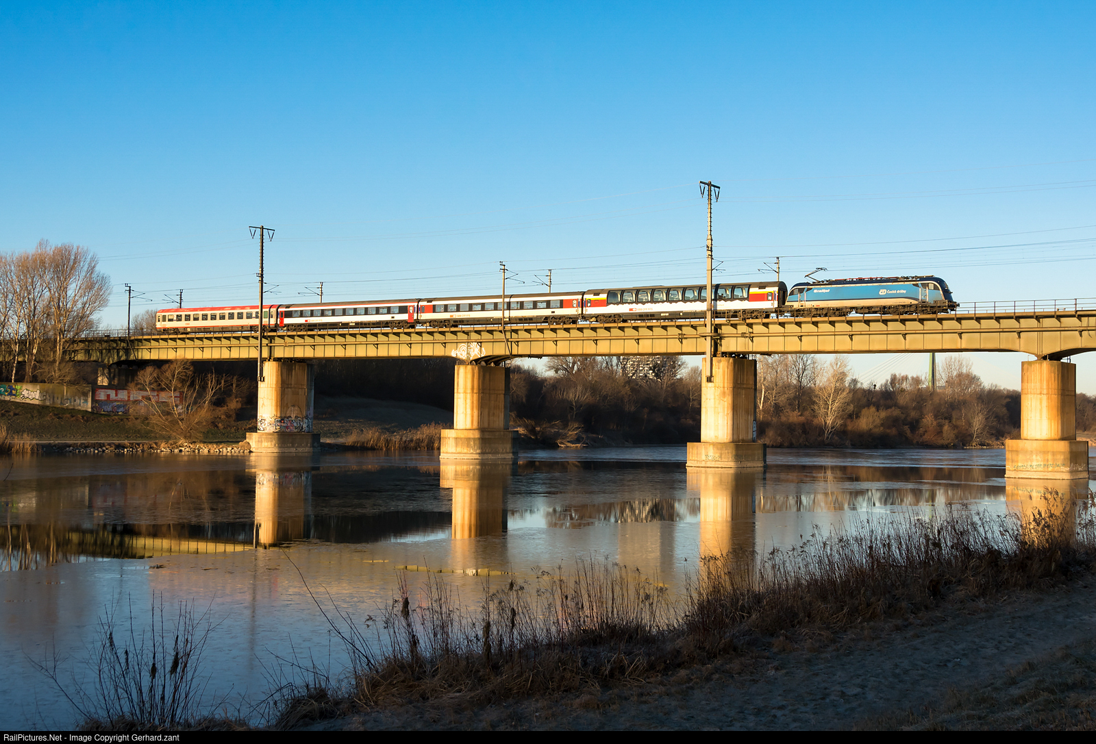 Eurocity 106 is crossing the river "Neue Donau"m in Vienna.