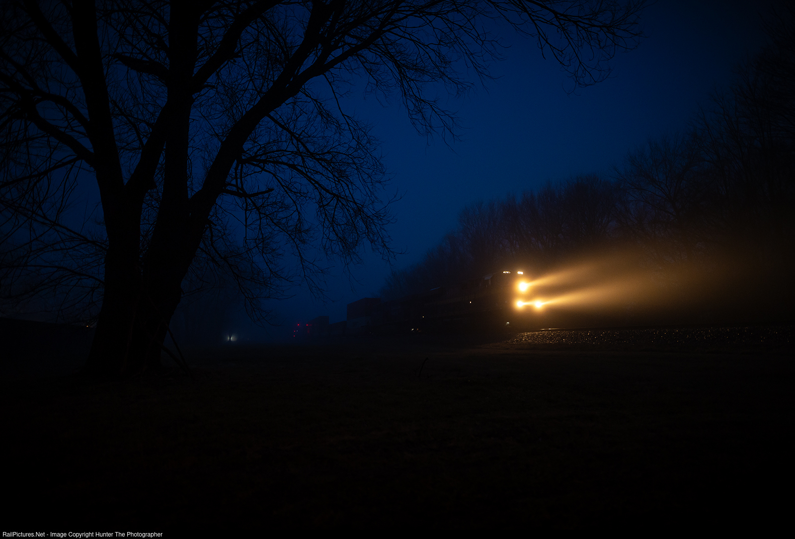Mystified Stack Train | With headlights cutting through the early morning fog of Thursday, January 25, 2024, northbound CPKC intermodal train I181 cruises through Westville, OK as it continues its journey from Mexico to Chicago.