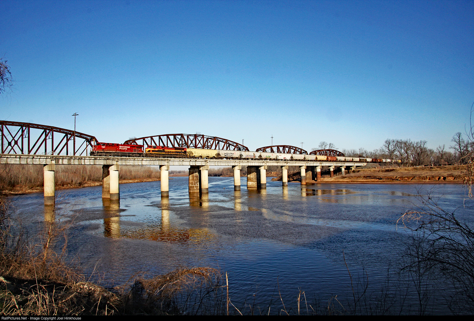 Just after (cold) dawn, a southbound CPKC train crosses into Texas over the Red River. This vantage point is feet from the northeastern tip of Texas. Arkansas is across the river, and is also about 20 feet to the lef of this photographer.