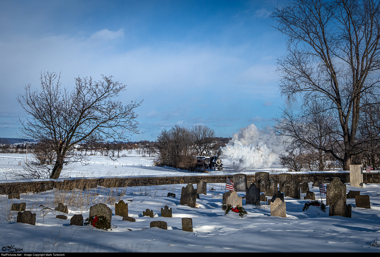 Norfolk & Western 475 passes Carpenters Graveyard on a cold and windy January afternoon.