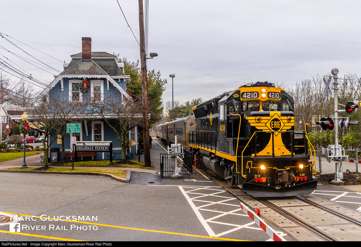 Erie On Erie. NJ Transit 4210 (GP40PH-2B, Erie Railroad Heritage) was unveiled as part of the 2023 Family Day Events at the Meadows Maintenance Complex, and has been out making the rounds on the Hoboken Division. The Hillsdale, New Jersey Station was the headquarters of the New Jersey & New York Railroad, operator of the Pascack Valley Line until it was leased by the Erie Railroad in 1896.
