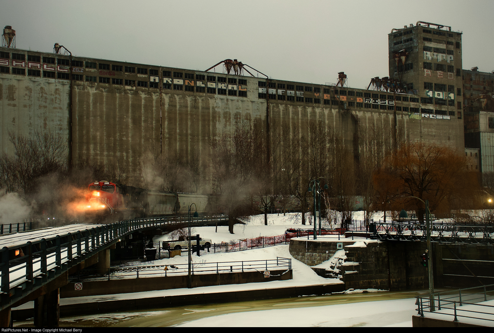 Grain train CN 878 is entering the Port of Montreal with CN 2988 up front and CN 3290 on the tail end.