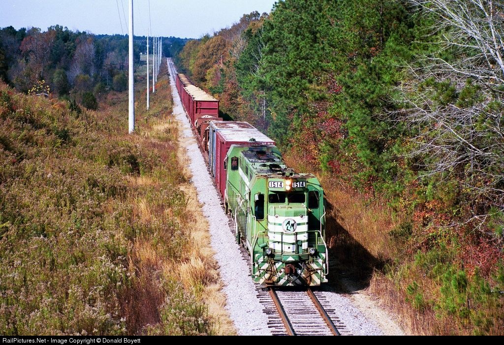 AL&M 1514 leads a southbound train on the Fordyce and Princeton Railroad.