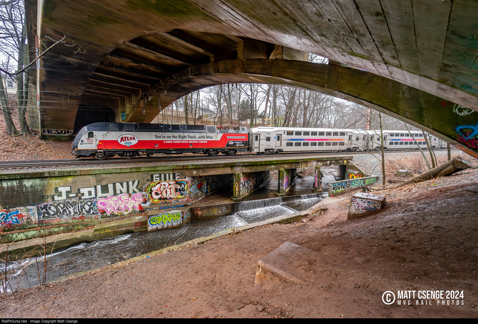 NJ Transit ALP-45DP no. 4503 leads Montclair-Boonton Line train 6238 under the Freeman Pkwy bridge, in one of the locomotive's first ventures off the Raritan Valley Line. |