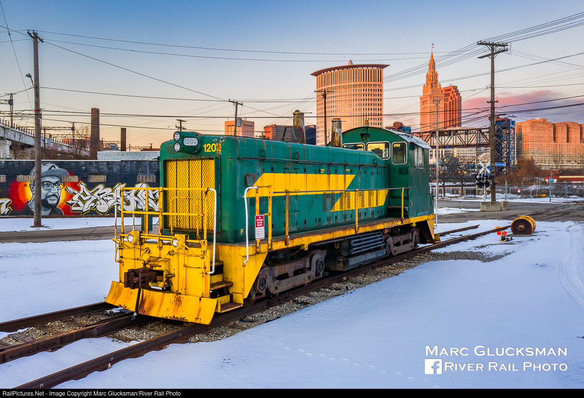 Cube On The Cuyahoga. The Flats Industrial Railroad is a Class III railroad in the heart of Cleveland, Ohio. The line went through a long history of Class I operation with railroads, with successor ownership from Conrail until 1996 when the FIR was created. The line is so named for serving customers in the Flats area of Cleveland. On the night of Wednesday, February 3, 2021, FIR 1202 (SW1200) sits by the lift bridge that leads to their interchange partner, Norfolk Southern, with Tower City in the background. In April of 2020, Grain Craft flour mill announced its closure, leaving the railroad without a single active customer. This locomotive was sold to the Davenport Industrial Railroad in Davenport, Iowa in 2021. Although another group had proposed to step in and take over no subsequent filings were made, and on September 14, 2023, the Surface Transportation Board ruled that railroad may remove signals, rails and other equipment from its operation.
