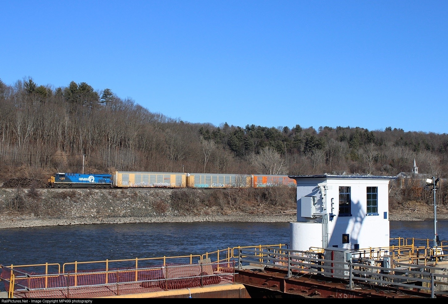 For the third time in a week, the Conrail heritage unit heads west on the Mohawk Sub, this time leading M205 seen looking right at home here at Lock 10 on former Conrail trackage.