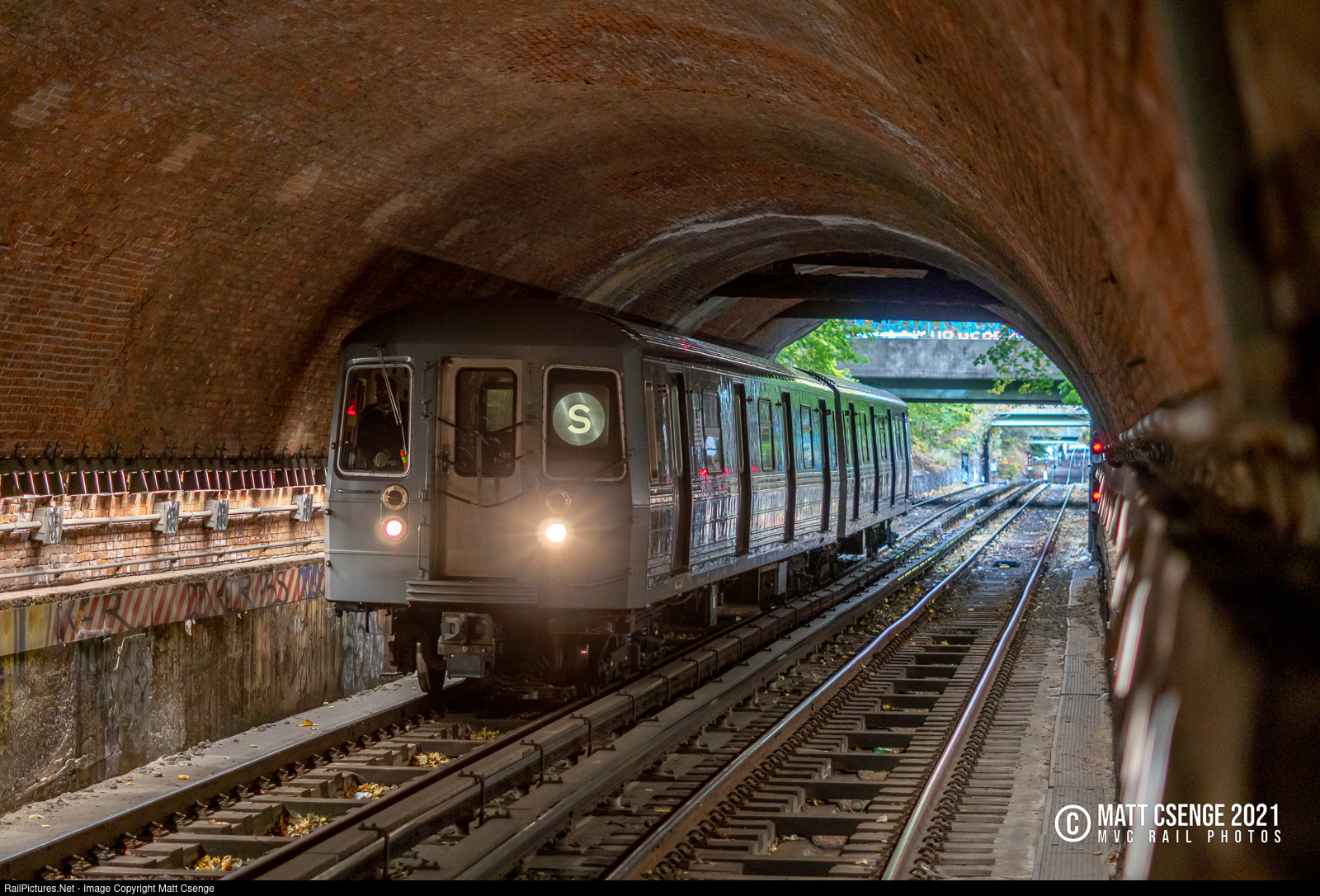Brick Tunnel. A southbound Shuttle train approaches Botanic Garden Station on the BMT Franklin Avenue Line, passing through the brick arch tunnel under Eastern Parkway. This tunnel is the oldest tunnel currently in use for the New York City Subway, having been built in 1878 as part of the Brooklyn, Flatbush and Coney Island Railway.