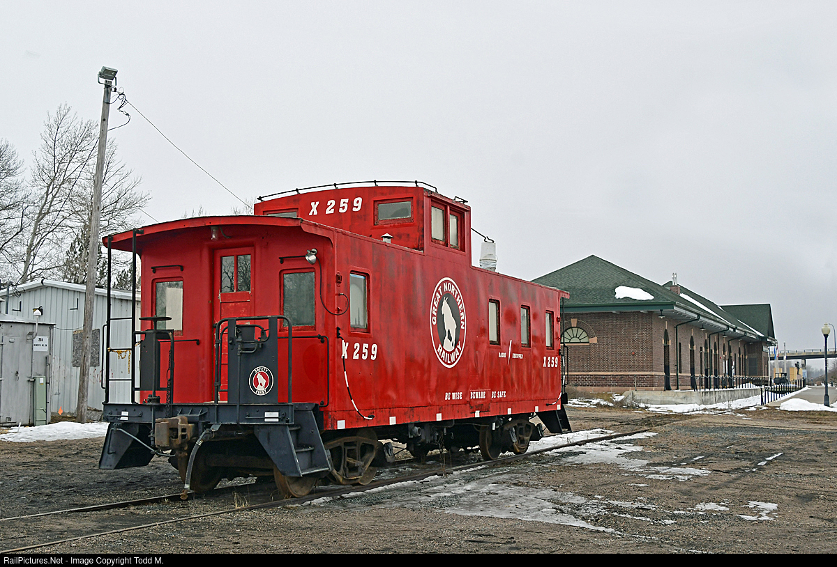 | A quiet and foggy Saturday morning finds newly placed Great Northern caboose X-259 (built 1948) sitting on rails beside the city of Bemidji’s Great Northern Depot which was James J. Hill’s last commissioned depot. The caboose arrived at its new home on Jan 25th, 2024, and will be preserved and made safe for visitors while being an educational tool connecting those folks with the past railroad activity that helped shape the area. The depot is currently home to the Beltrami County Historical Society. |