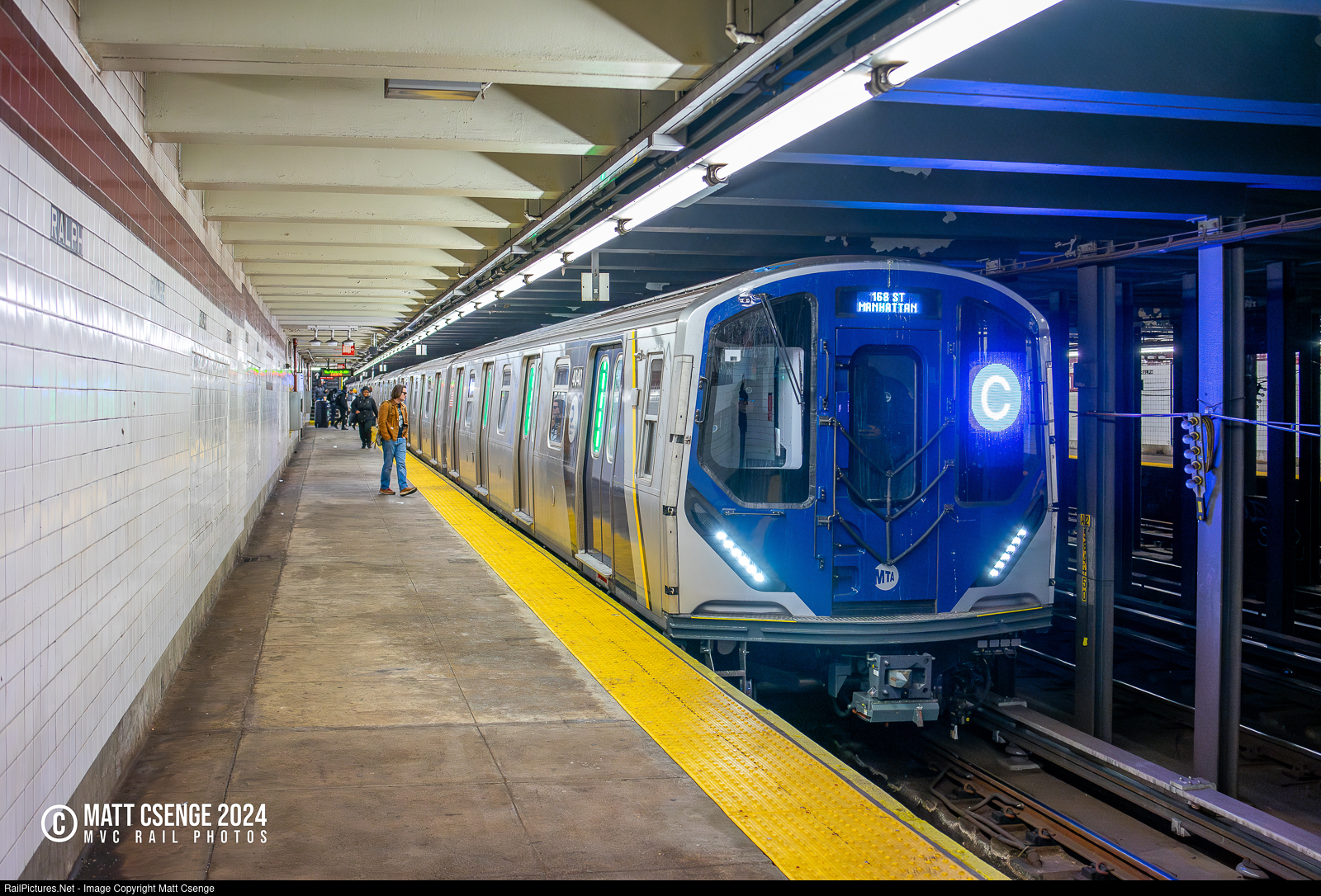 New York City Transit Authority (NYCTA) R211T no. 4040 is the lead motor on a Manhattan-bound C train seen stopped at Ralph Ave Station on the IND Fulton Street Line. This is one of two test trains of the new R211T cars, the open gangway variant of the R211A that have been quickly growing in numbers in the subway. |