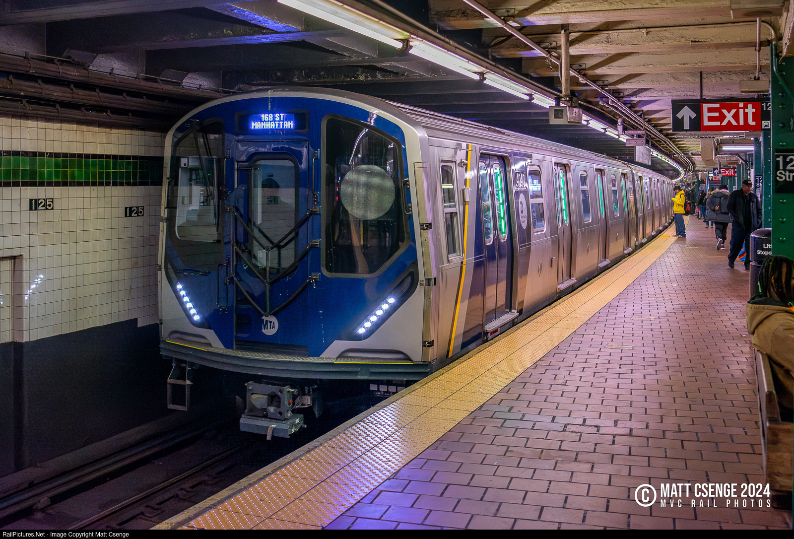 New York City Transit Authority (NYCTA) R211T no. 4040 is the lead motor on an uptown C train seen arriving at 125th St Station on the IND 8th Avenue Line. This was at the brief millisecond when the screen for the route bullet refreshed!
