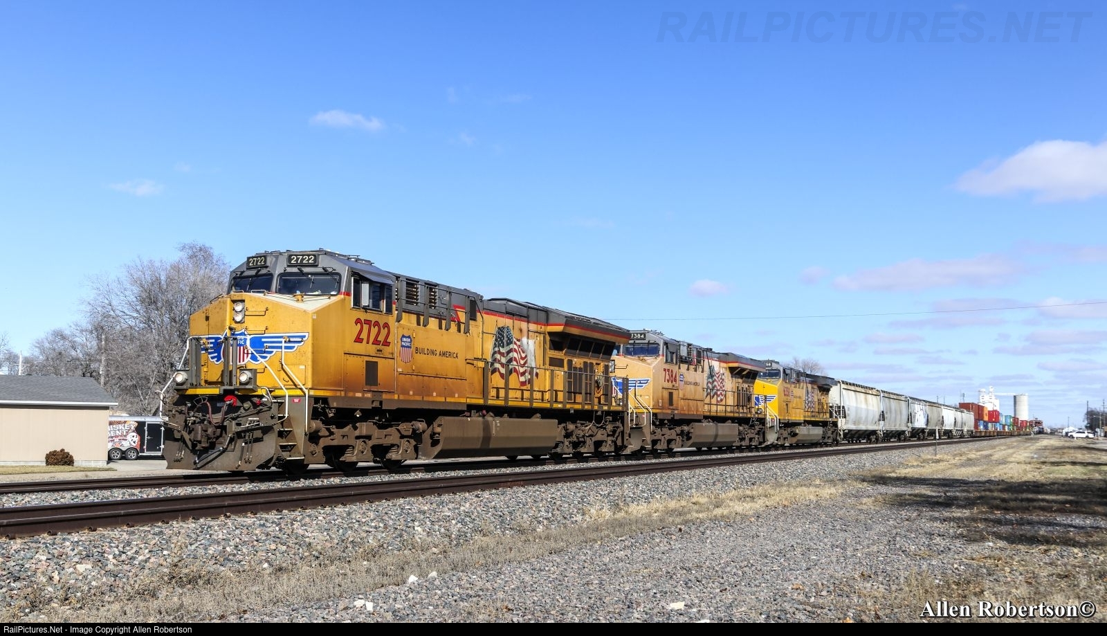 UP 2722, 7384, & 6358 westbound with a manifest.