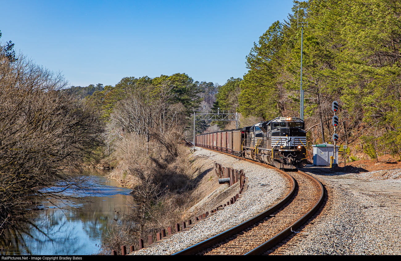 | Norfolk Southern Coal Train 74G heads eastbound through Brookside, AL. on their way to the Gaston Steam Plant in Wilsonville, AL. |