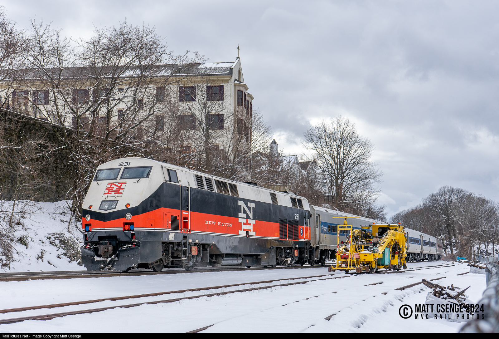Metro-North Railroad P32AC-DM no. 231 is the power for Hudson Line train 8832, seen here departing Peekskill Station. The siding tracks here are often used to store maintenance equipment , like the tamper that was there on this day. |