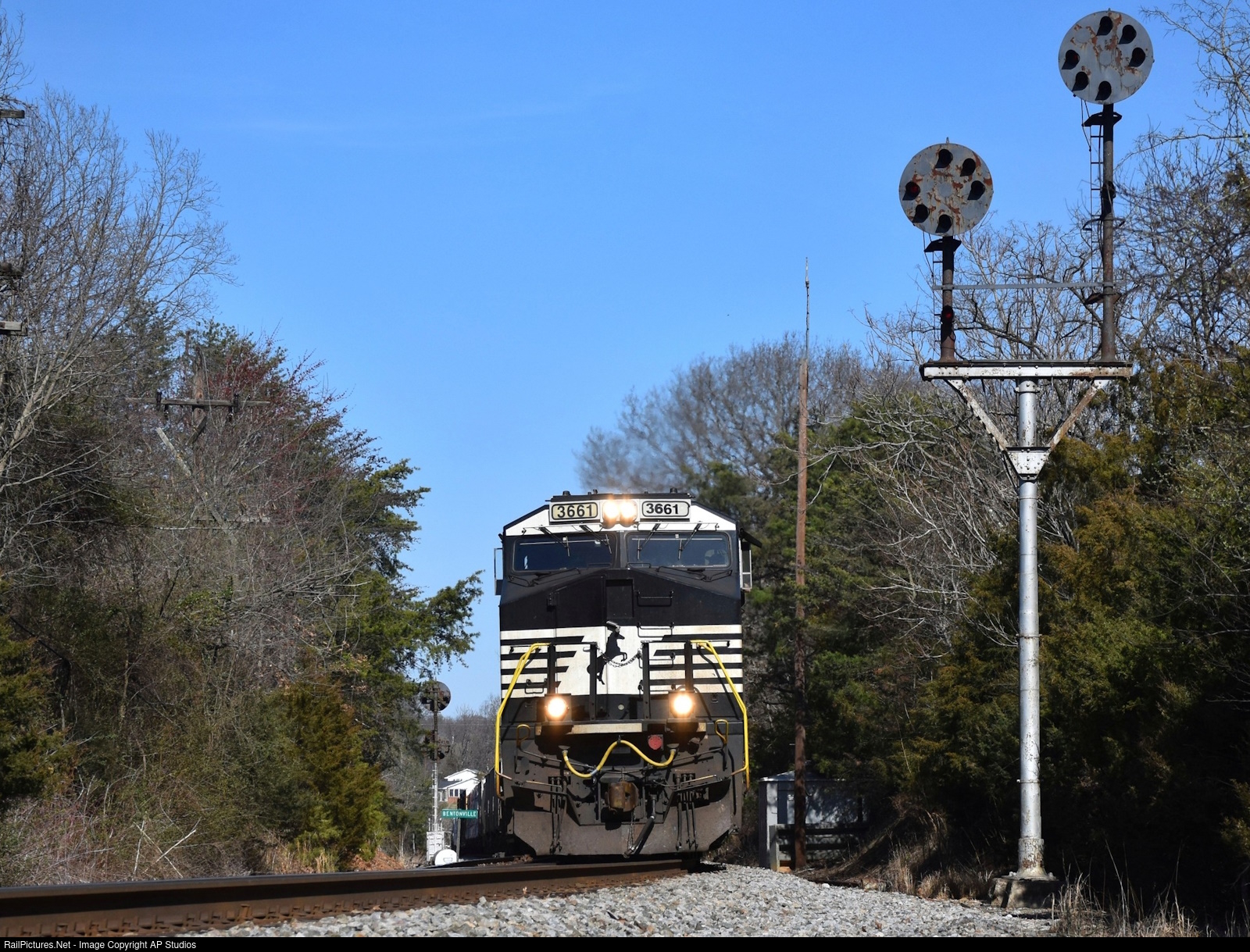 | On a sunny weekend afternoon, NS general manifest 11Z is knocking down a set of classic former N&W position light signals at the control point. This train comes by everyday and passes down south through some scenic view points, a short time later the railroad replaced these old relics. |