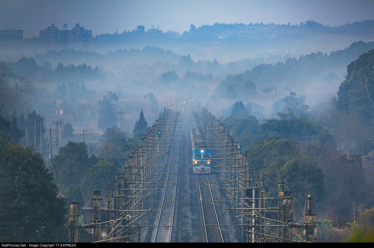 On a winter morning, the Sichuan Basin was shrouded in mist. A northbound express train to Beijing was running on time on its route. By ultra-telephoto lens, this passenger train about 450 meters long looked like a short pencil.