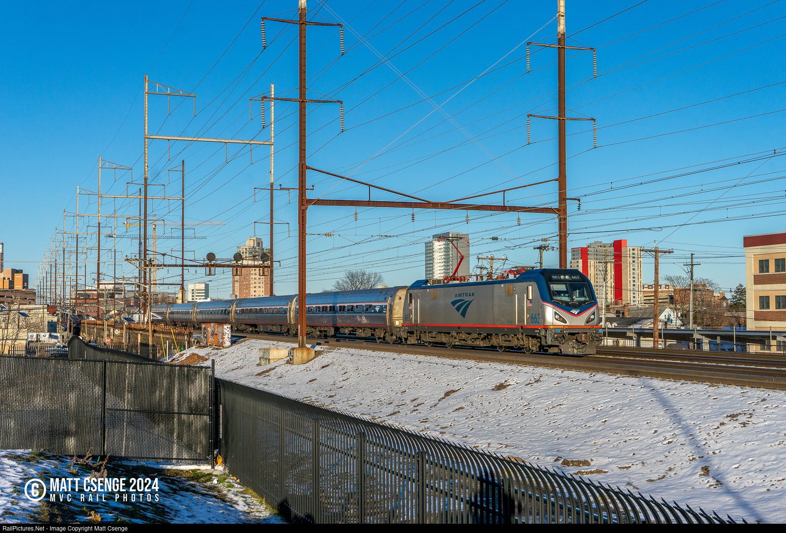 A typical weekday afternoon on the Northeast Corridor sees quite a nice variety of equipment pass by en-route to a number of different destinations. Here we see Amtrak Keystone Service train 651 led by ACS-64 no. 663, bound for Harrisburg. |