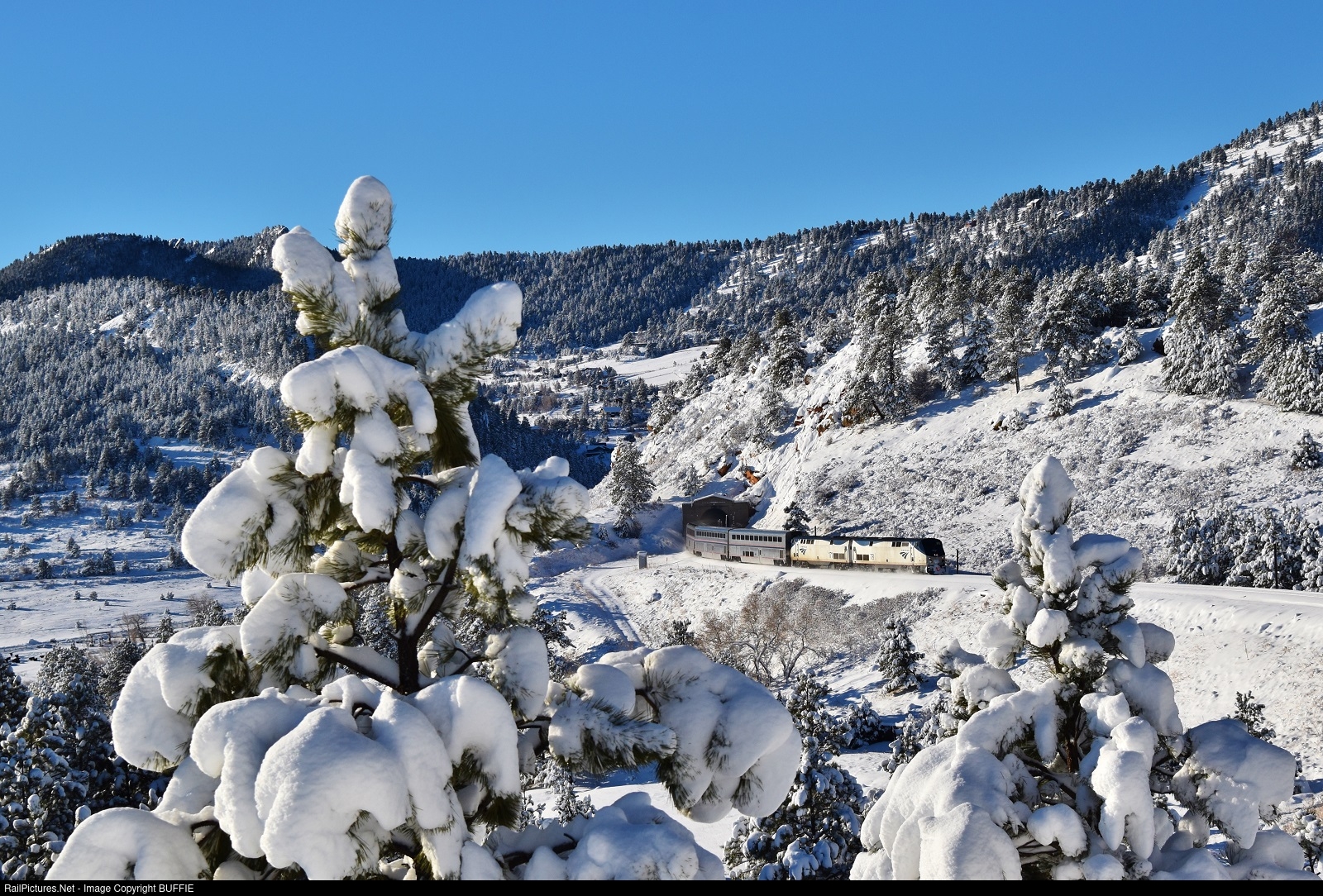 Amtrak's Winter Park Express Ski Train exits Tunnel #1 as it takes skiers from Denver to the ski resort just on the other side of the Moffat Tunnel.