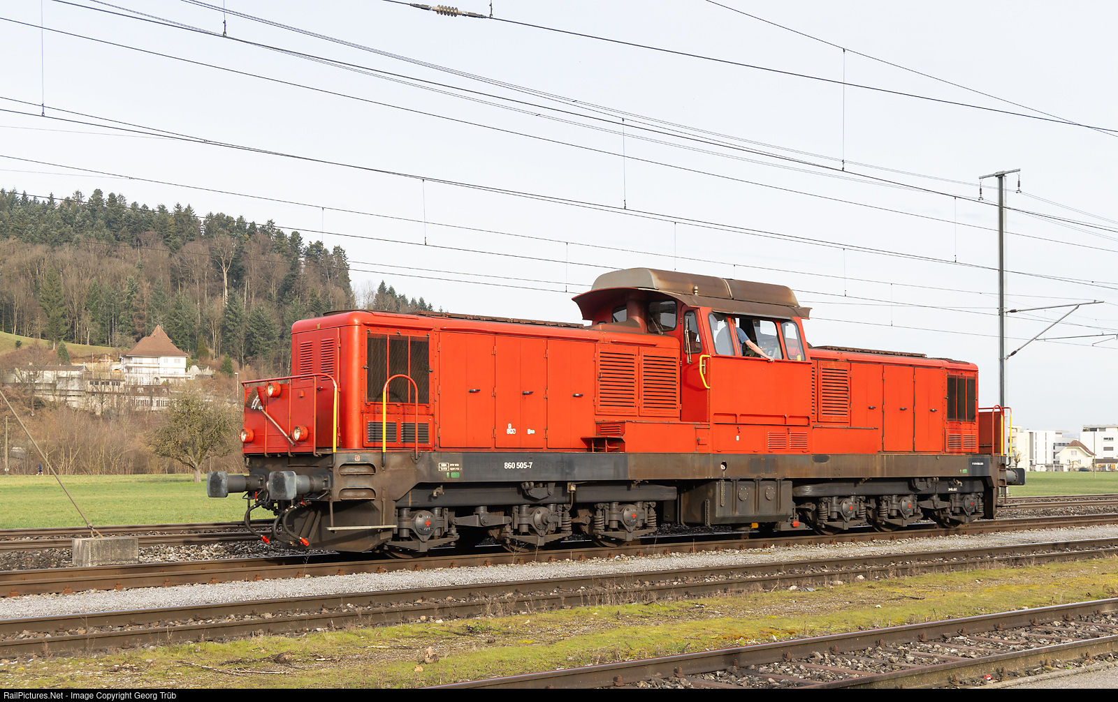 Former SBB diesellocomotive Bm 6/6 # 18505 (Bm 860 # 505), now owned by the Oensingen-Balsthal-Bahn Historic, in Dagmersellen. The locomotive was used this day for the transfer of two old freight cars from Dagmersellen to Rothrist for scrap. The locomotive was built in 1958 by SLM, BBC, SAAS and Sulzer for the SBB and taken over in 1960. Withdrawn in 2016 in Brig, then owned by SBB Historic in Olten till july 2022.
