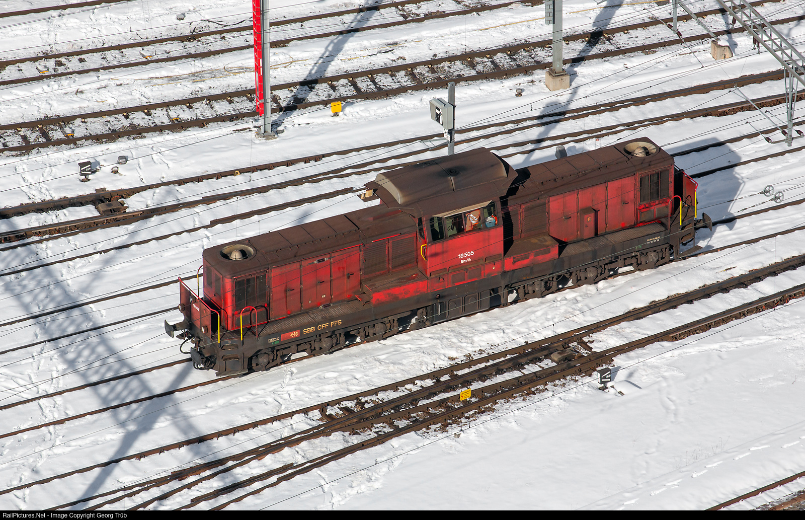 SBB diesellocomotive Bm 6/6 # 18505 (Bm 860 # 505), built in 1958 by SLM, BBC, SAAS and Sulzer and delivered in 1960, shunting in Brig in behalf of SBB infrastructure. In 2016, the locomotive was withdrawn and came to SBB Historic in Olten. In july 2022 sold to the Oensingen-Balsthal Bahn Historic.