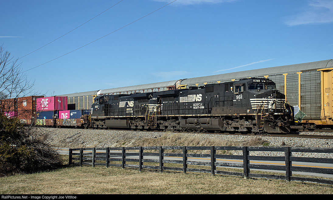 Over the last twenty-five years or so I could never get to excited to shoot NS Dash 9's however with many of them now being rebuilt as AC6Ms I suppose finding a pair of them today is getting scarce. NS Dash 9 9611 leads another east for Danville before turning north at SJ towards Cincinnati.