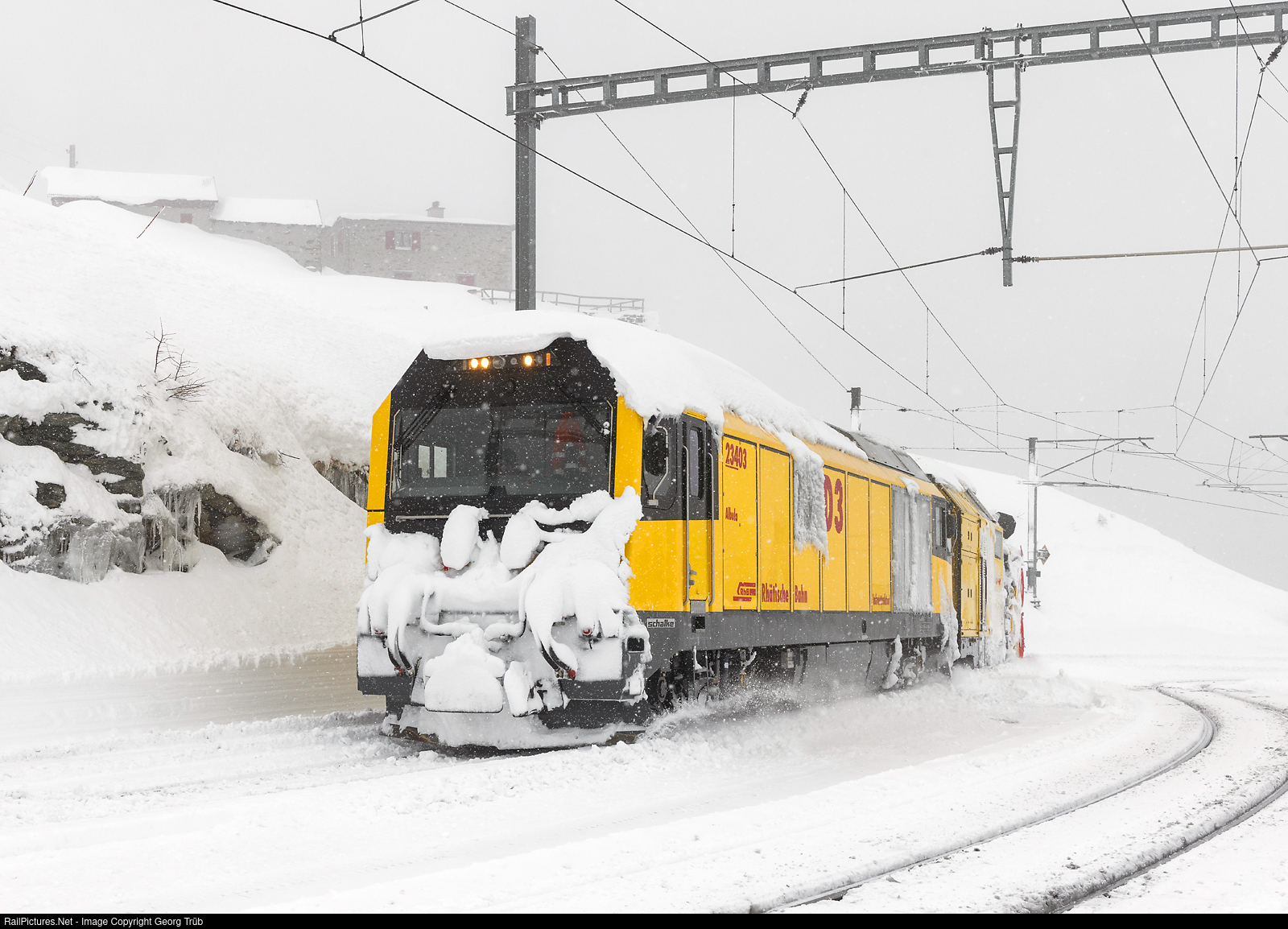 RailPictures.Net Photo: 23403, 95404 RhB - Rhätische Bahn Gmf 234, Xrot mt at Alp Grüm, Switzerland by Georg Trüb