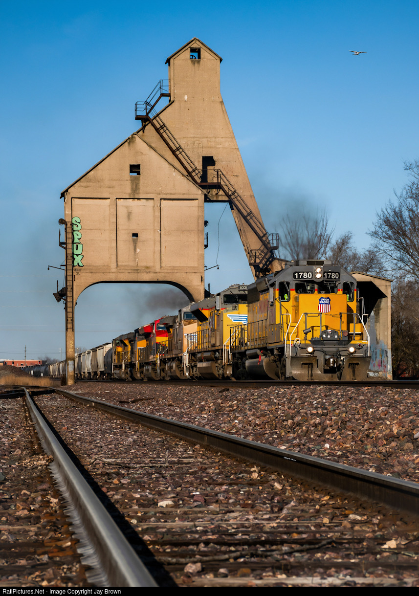 On an unseasonably warm winter morning, the stars would align for UPs Clinton, IA to Proviso, IL road train to feature a former C&NW workhorse SD40 taking the charge. Seen here ducking under its respective coal tower in Dekalb, IL in the beautiful morning sun.