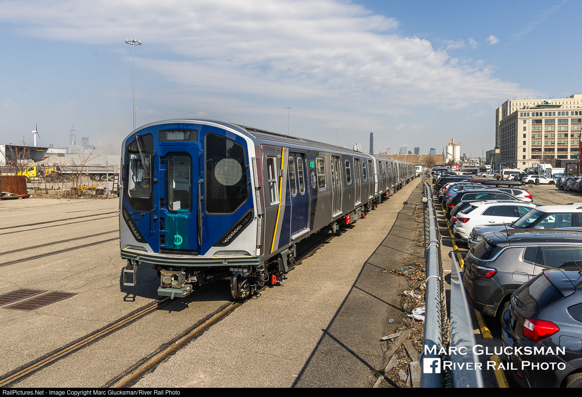 Delivery To Scrap? The newest Metropolitan Transportation Authority - MTA NYCT Subway Kawasaki R-211A set (4180-4184) was delivered overnight and is seen at the South Brooklyn Marine Terminal in Brooklyn, New York on Tuesday, February 27, 2024. Normally cars are brought to the south end of the complex closer to the South Brooklyn Railway interchange, but for some reason the cars on this day were dropped on the track that is normally the run around for NYNJ Rail when they serve Sims Metal Management, a scrap company.