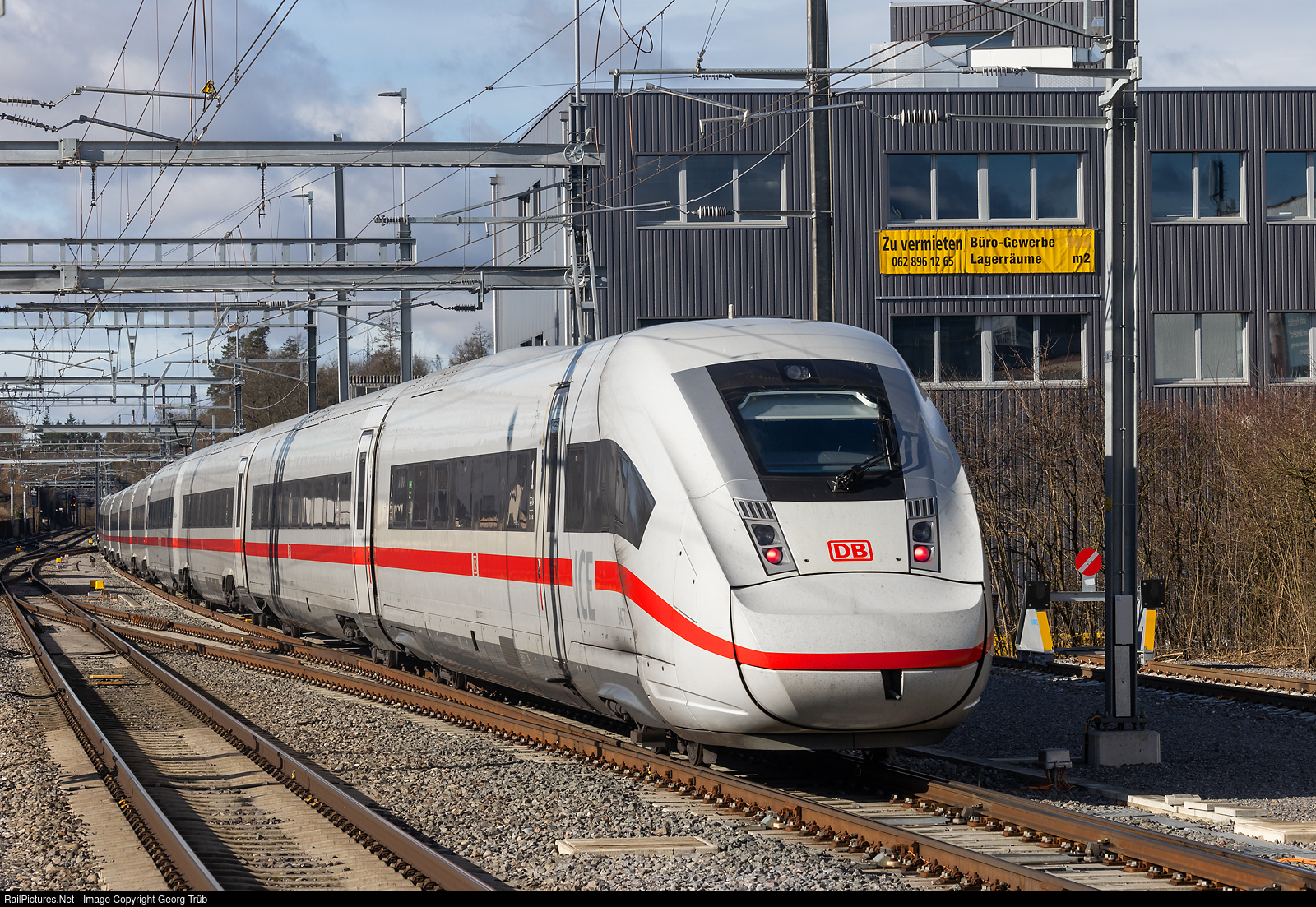 ICE 4 # 9477 of the Deutsche Bahn AG, running as ICE 74 from Zürich via Basel-Frankfurt-Hamburg to Kiel, in Mägenwil track 4. This weekend the station of Lenzburg was completely closed for engineering work, so this train, which circulates usually from Zürich via Lenzburg-Olten VL to Basel, was rerouted via Killwangen-Mägenwil-new joint line-Birrfeld-Brugg VL-Bözberg to Basel.