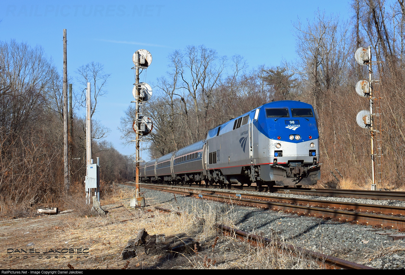 RailPictures.Net Photo: AMTK 98 Amtrak GE P42DC at Deerfield, Massachusetts by Daniel Jakobiec