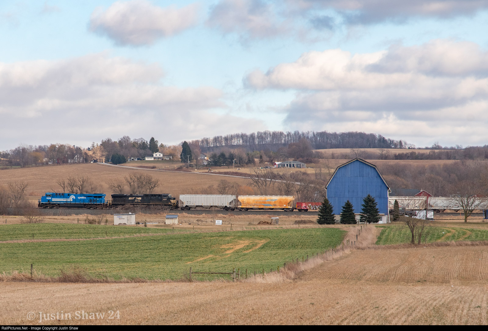 NS 316 by the Blue Barn in Attica with the Conrail Heritage