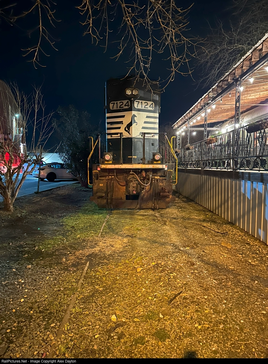 A lucky leap day with P07 sitting on the runaround track in downtown Carrboro. It's quite unusual to see P07 out here at night as they usually run around lunchtime, but it seems the crew has tied down the train for the night.