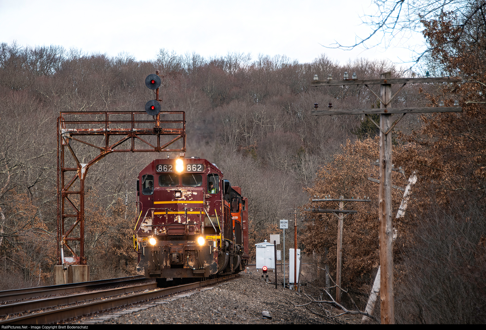 | BLE 862 leads a huge Misc Run through the signal bridge at Oneida, into Butler, and eventually North Bessemer. |